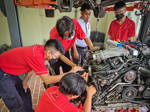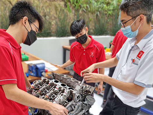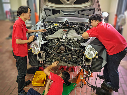 Students are given the opportunities to explore the latest automotive technologies in fully equipped, modern facilities and with auto-industry standard machineries. Eagled focused practical skills and abilities. (70% hands-on, 30% theory)